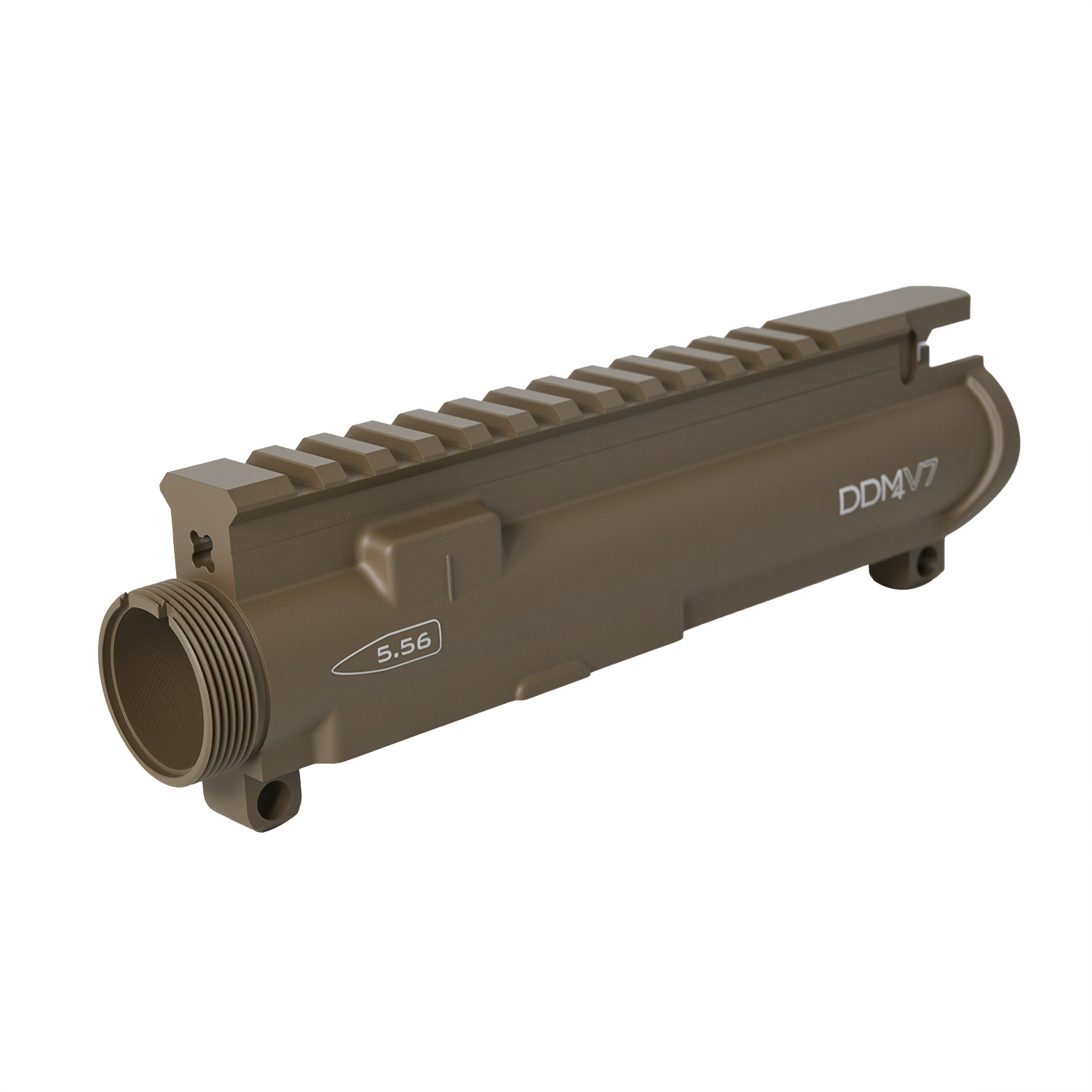 ダニエル・ディフェンスのフラッグシップモデルとも言えるDDM4V7を再現した刻印です。参考画像ではアッパーのモデル名及び弾頭サイズの刻印が黒(実銃ではアルマイトの上からFDE塗装、レーザー剥離のため)となりますが、当製品では白彫となります。