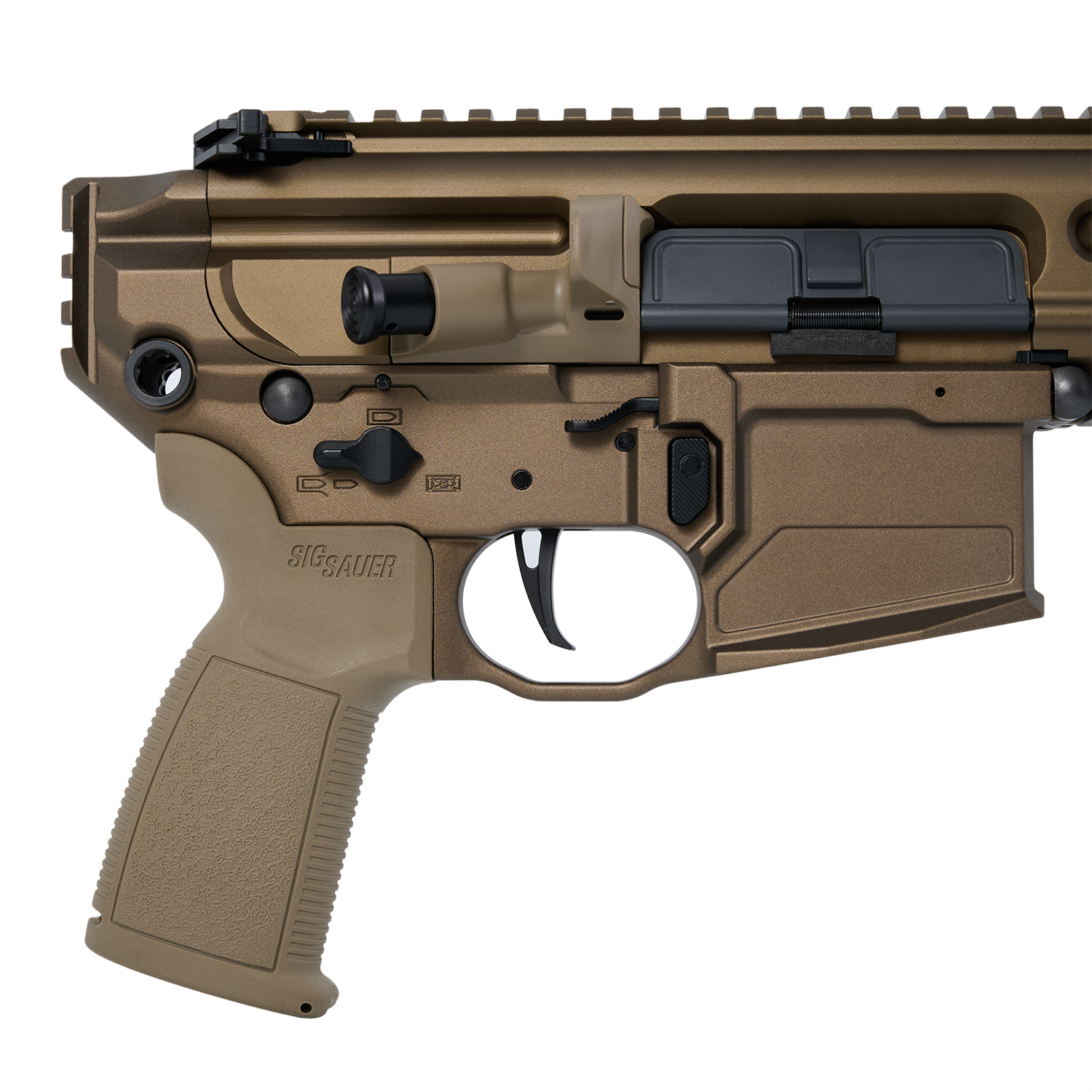 実銃では当初民間色も強かった SIG MCX ではありますが、アメリカ陸軍の次世代分隊火器(NGSW:Next Generation Squad Weapon)への選出に前後してミリタリー仕様への進化も目覚ましく、SPEARモデルでは軍用ライフルたる機能、ディテールなど、先進性と信頼性を併せ持つアサルトライフルを体現しています。