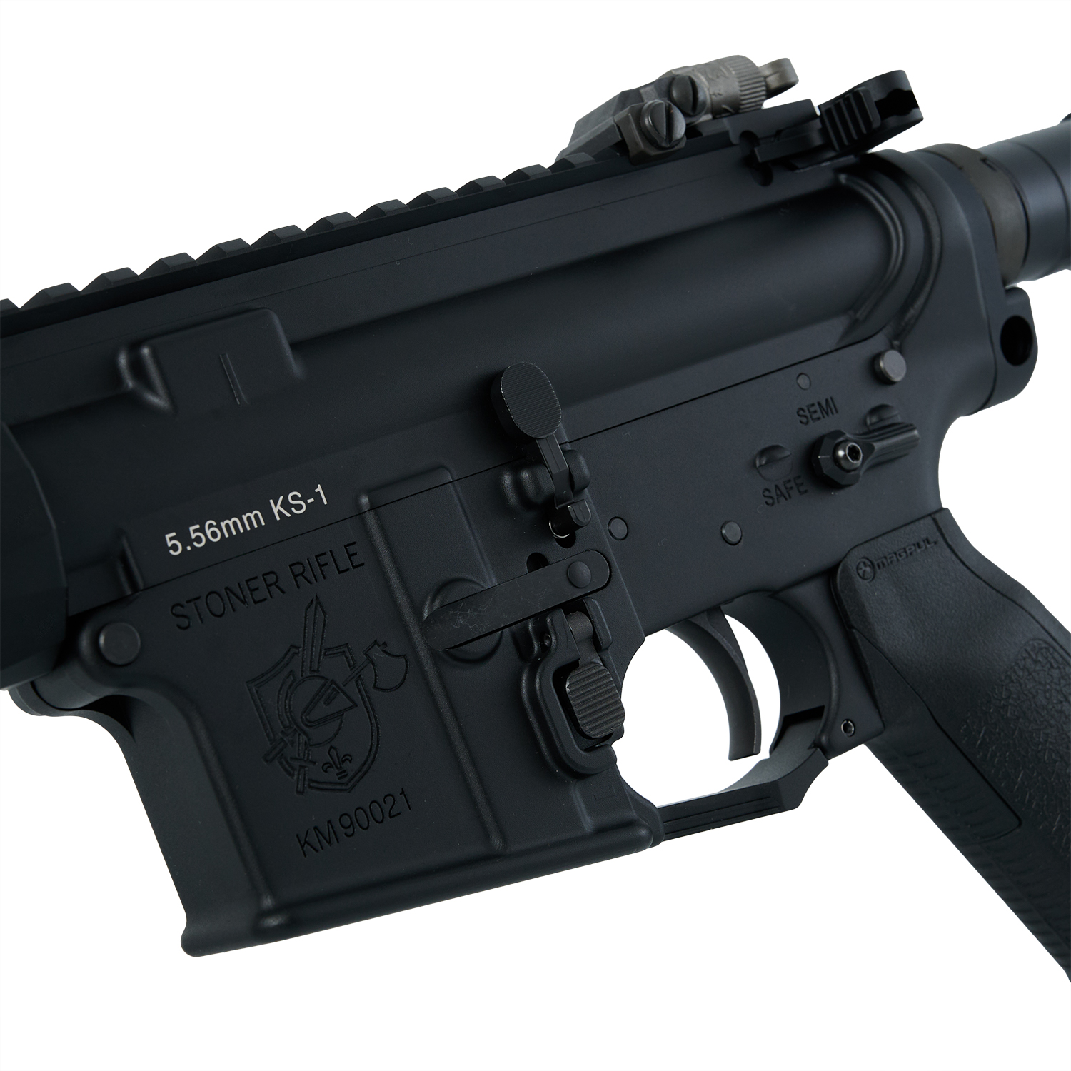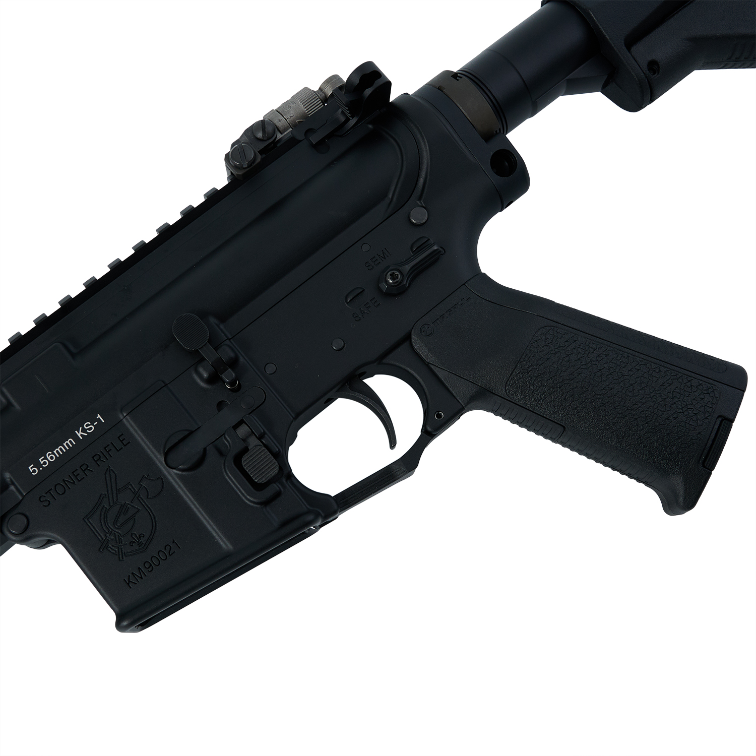 ピストルグリップには実物のMAGPULパーツを使用し、構えた時の感触やガンコントロールにおいても1クラス上の満足感となります。