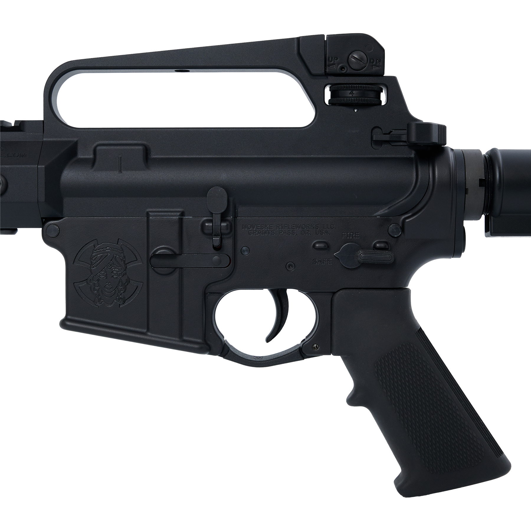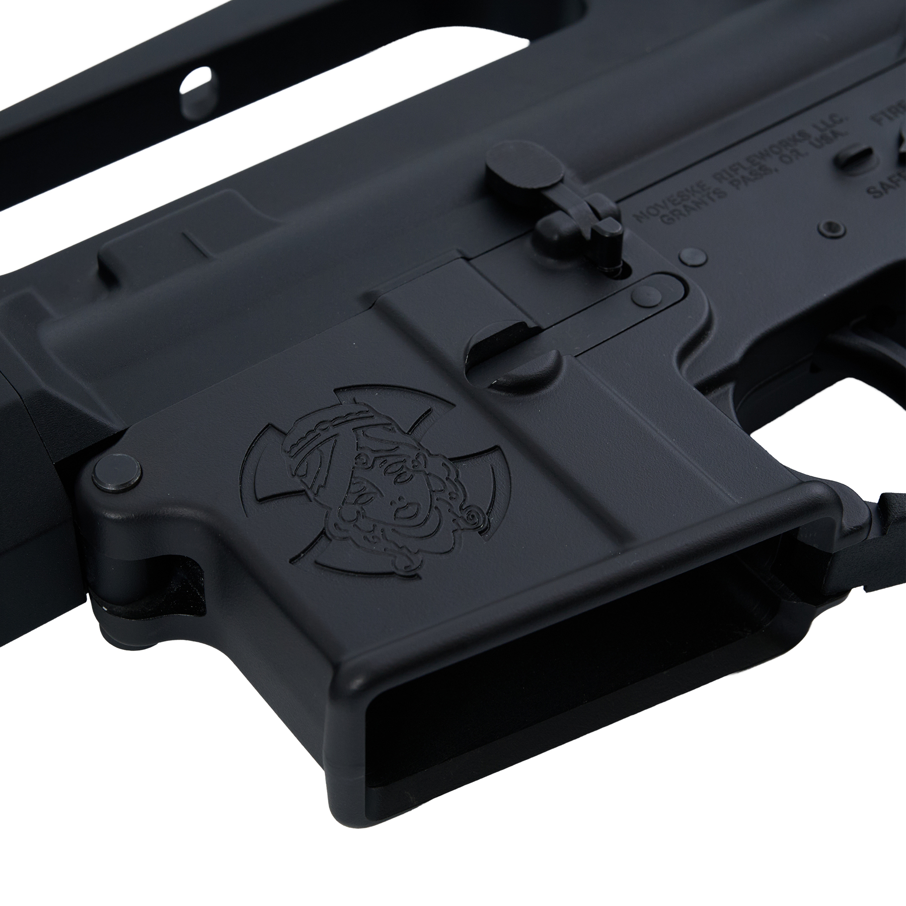 キャリーハンドル付きNOVESKE N4 Gen4という特殊なアッパーと、80%レシーバーベースのWRMFZY×IRON X刻印ロアの組み合わせは、オルガエアソフトだから製作できた1挺と言えるでしょう!