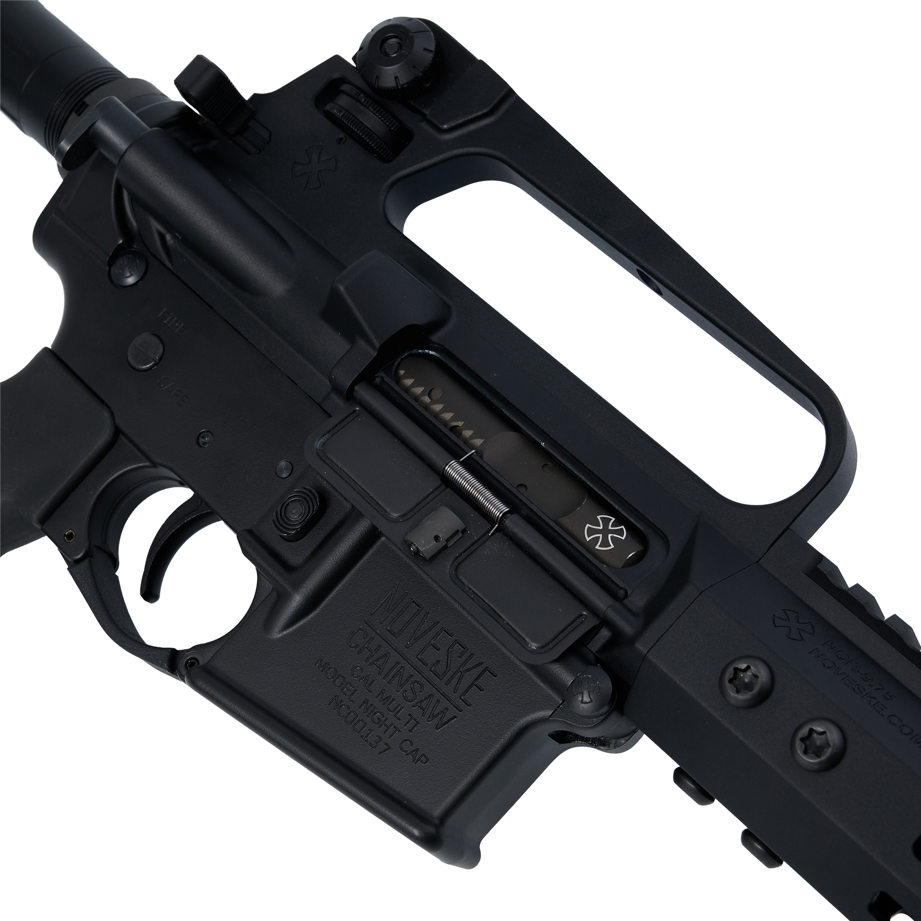 数あるAR-15ビルダーの中でも群を抜く人気を誇るNOVESKE RIFLEWORKSが、不思議な存在感を放つミリタリーアパレルWRMFZYとコラボした名銃「CHAINSAW NIGHTCAP」を東京マルイMWS準拠のガスブローバックライフルで再現しました。