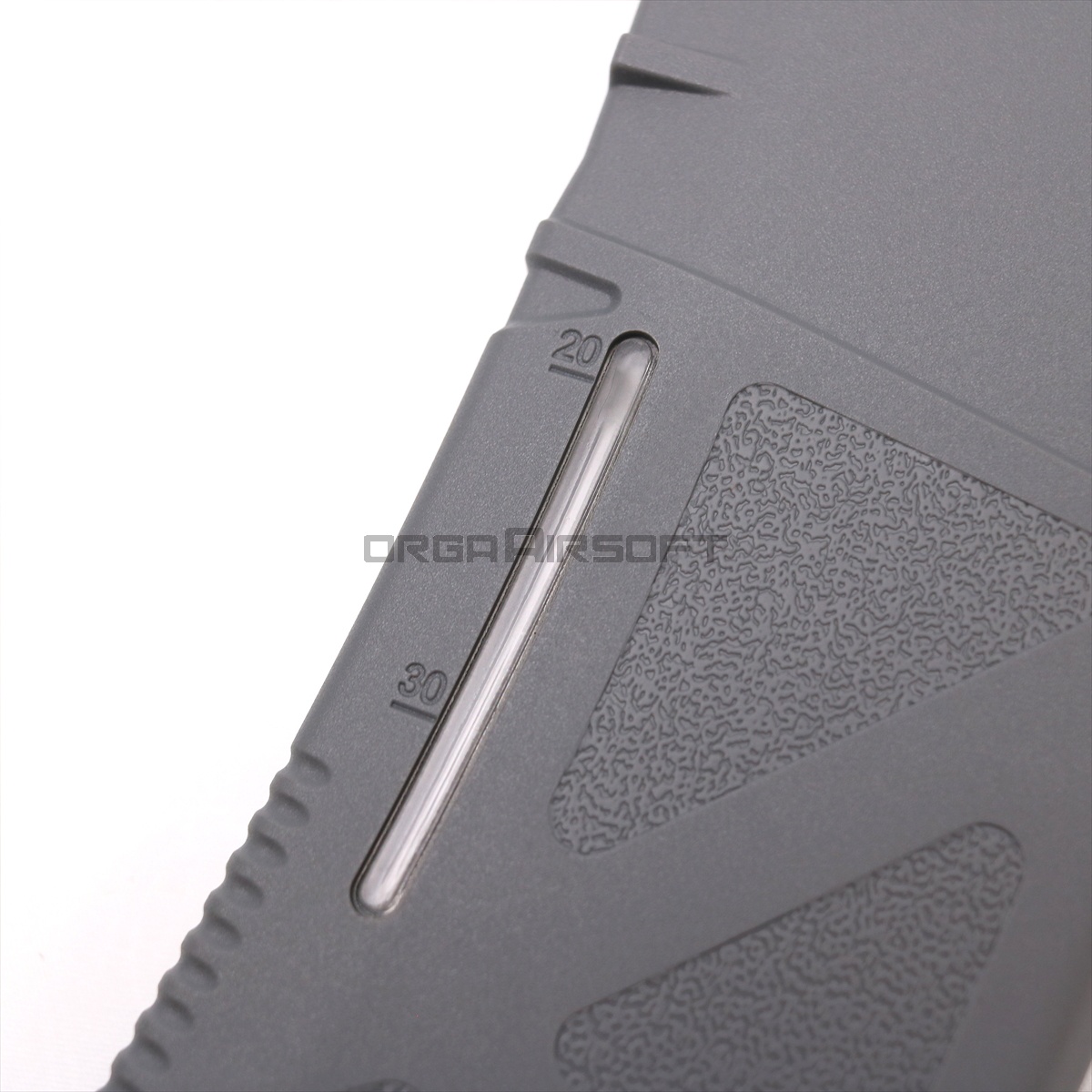 インナーが半透明、アウターの一部がウィンドウになっており、残弾20~30発の部分を確認できるよう工夫されています。
