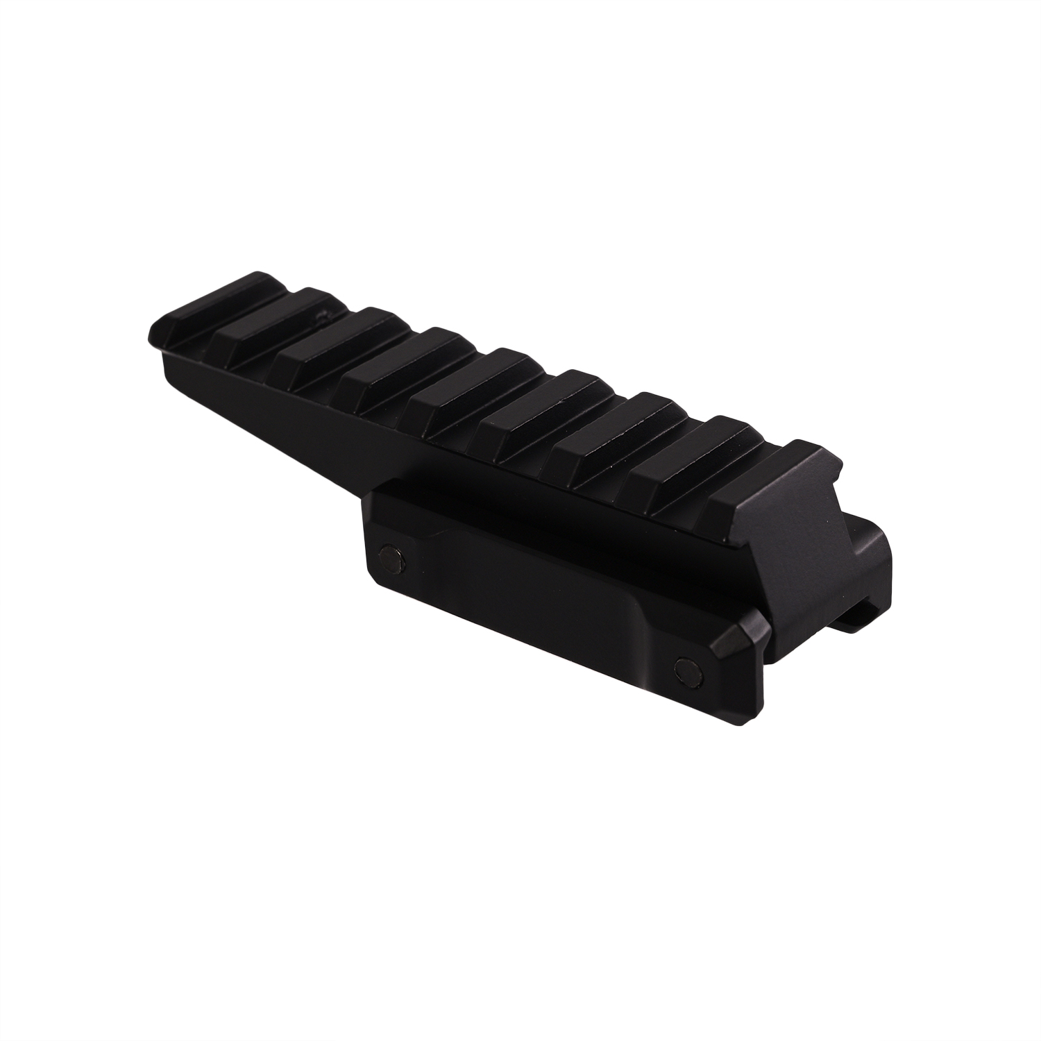 トップレールの高さを17mm上げることができ、サバゲーでのマスク使用時やレーザーデバイス避けなど、ドットサイトの高さがもう少し欲しい時に重宝します。ライザー本来の目的であるマグニファイアとの高さ合わせにも勿論使えます。