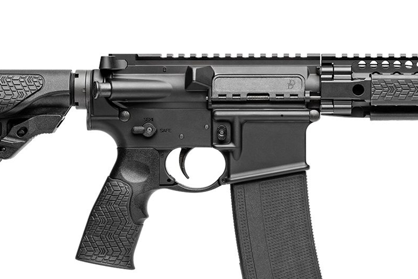 ダニエル・ディフェンスのフラッグシップモデルとも言えるDDM4V7を再現した刻印で、アッパーにもモデル名や弾頭サイズの白彫が入ります。実銃では下地のアルマイトが見える感じの黒文字となる仕様がありますが、本製品では下地が無垢となりますので白彫刻印でのご提供となります。