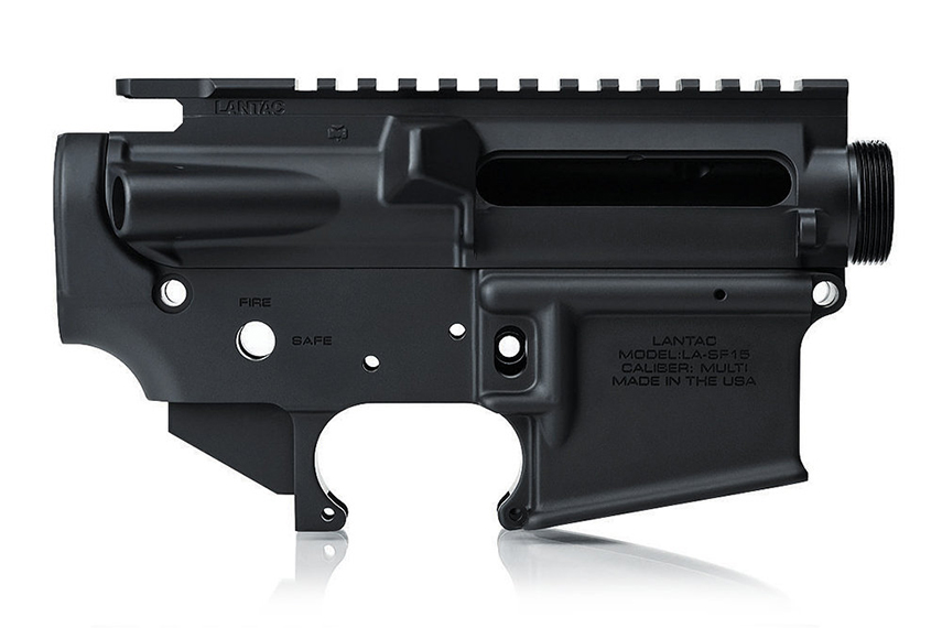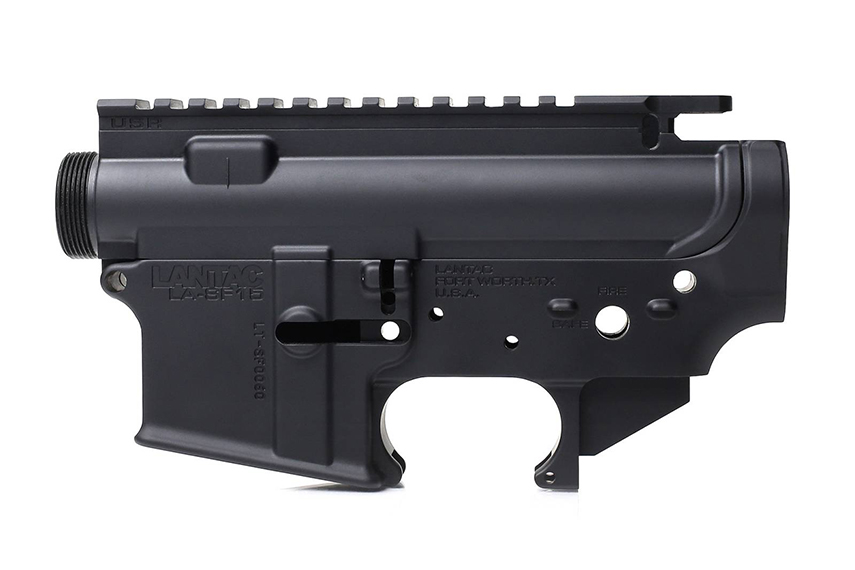 LANTACのLA-SF15フォージドレシーバーセットを再現した刻印です。現代的なフォントがクールで、外装パーツをメーカー不揃いでセットアップする場合などにカッコ良く決まります。