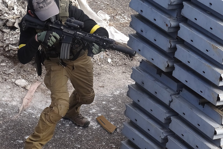 タクティカルリロードは余裕のあるタイミングで行うとはいえ、エアガンが撃てない時間も、ポーチとエアガンを行き来する手の動きも、最小限に留めるのが理想です。