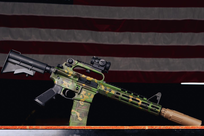 1本目はXでも予告ポストしていたCHAINSAW NIGHTCAPです!キャリーハンドルや三角サイト、CAR-15ストックやA2グリップなど、一見するとオールドスクールなコルトコマンドー風なのに、よくよく見ればN4 Gen4アッパーでM-LOKプラットフォームも備えるという新旧融合した装いが斬新なAR-15です。