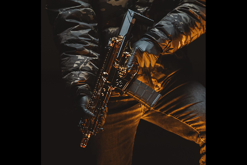 懸賞モデルはセレクターやマガジンキャッチ、ボルトリリース、ダストカバー、ピボット/テイクダウンピン、ハンドガード固定用のボルトまで金メッキな徹底ぶり。