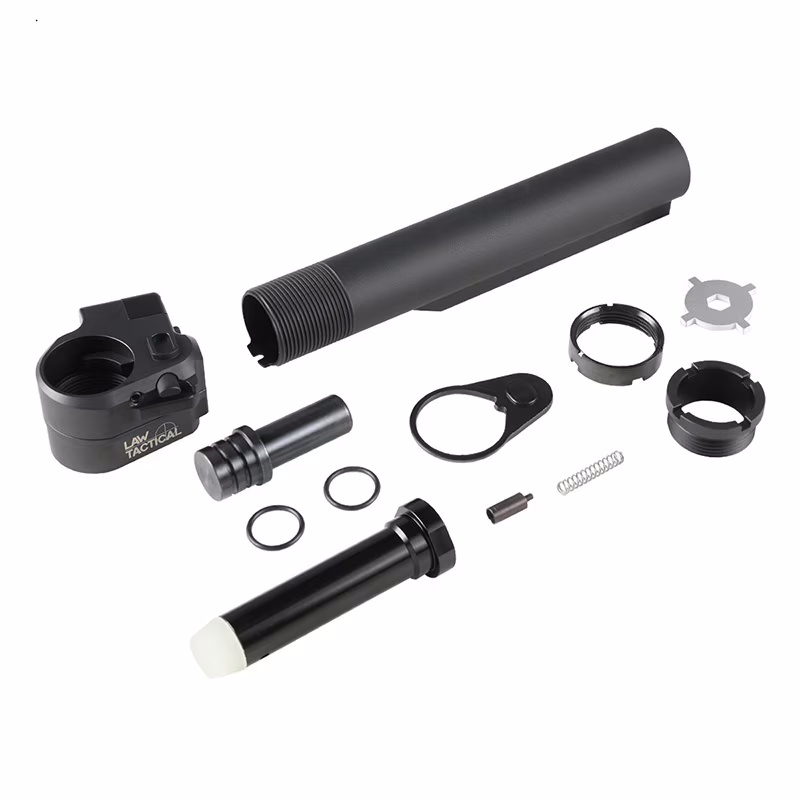 ストックチューブはガスガン用リアルサイズストックチューブに対応。各パーツには高剛性のステンレス及びアルミ合金を採用しているため、ヒンジを始めとした可動部分の強度が極めて高くなっております。