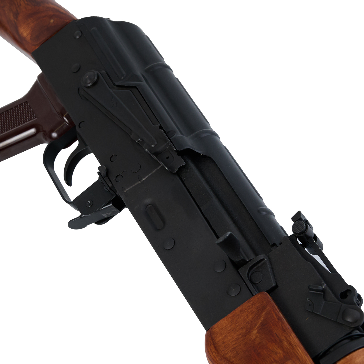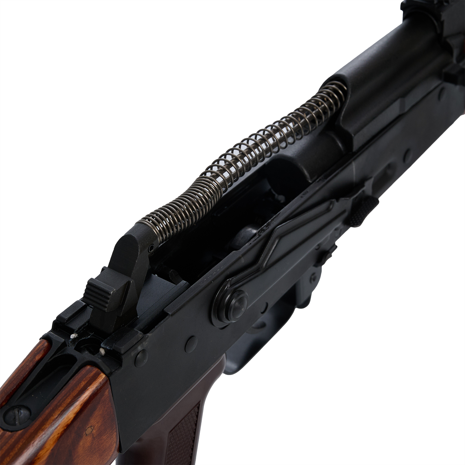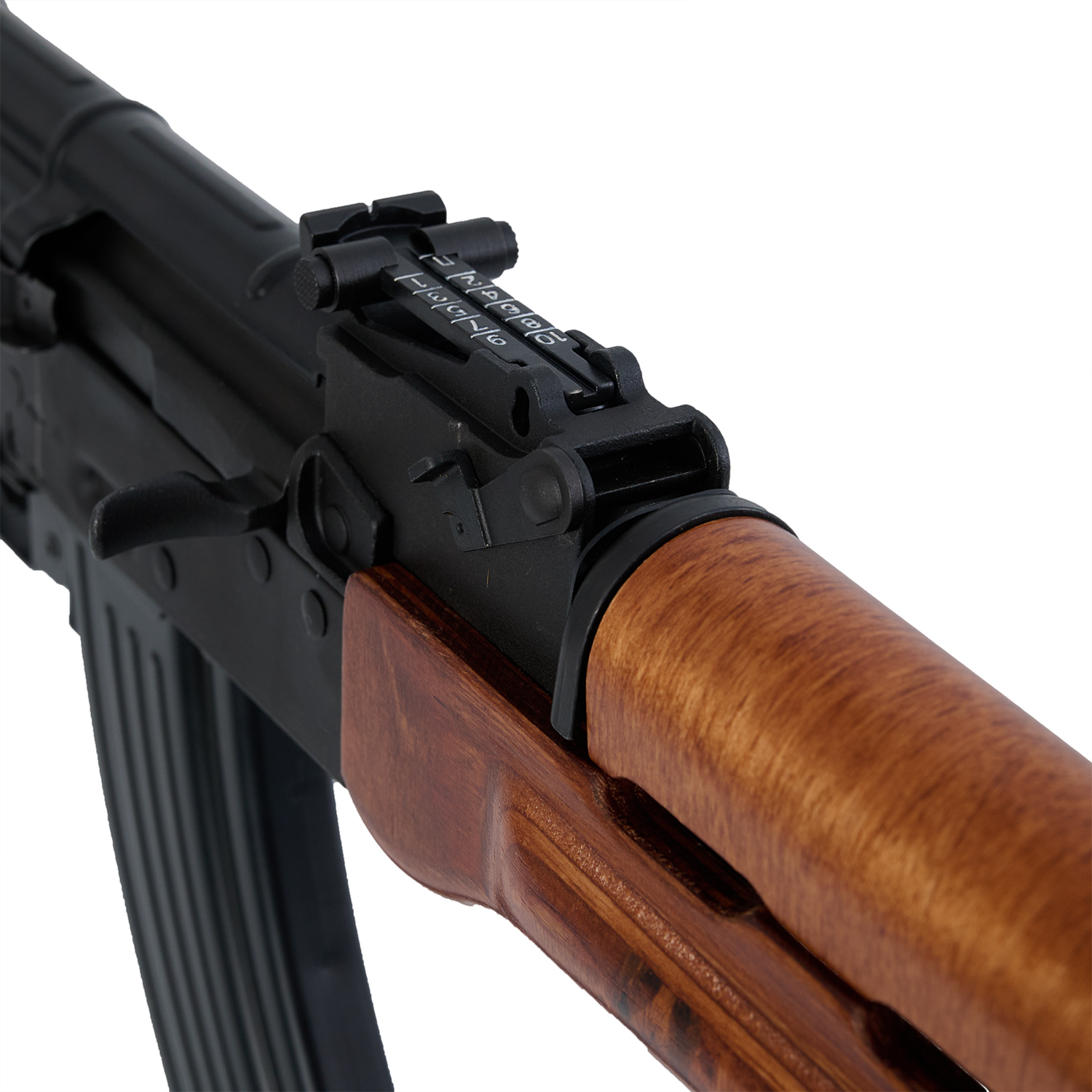 ミハエル・カラシニコフが設計したAKMはAK Modernizirovannyの名の通り、AK47に近代改修を施した後継機として1959年に正式採用されたライフルです。設計はAK47に比べ生産性の向上が図られており、レシーバーは削り出しからプレス加工に移行しているほか、重量の軽量化にも成功しています。