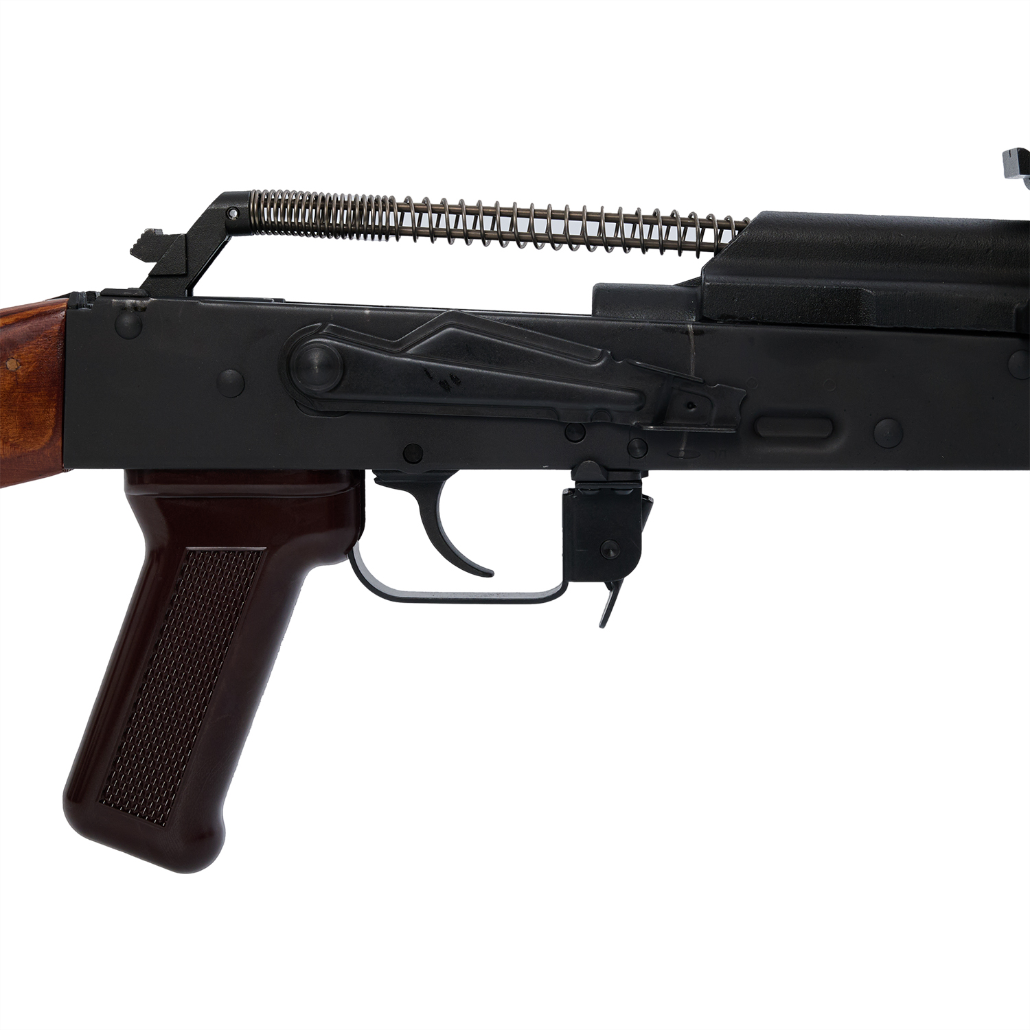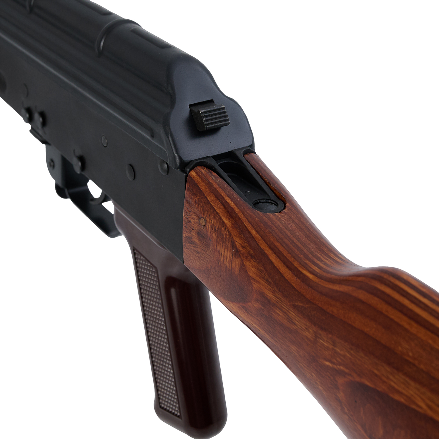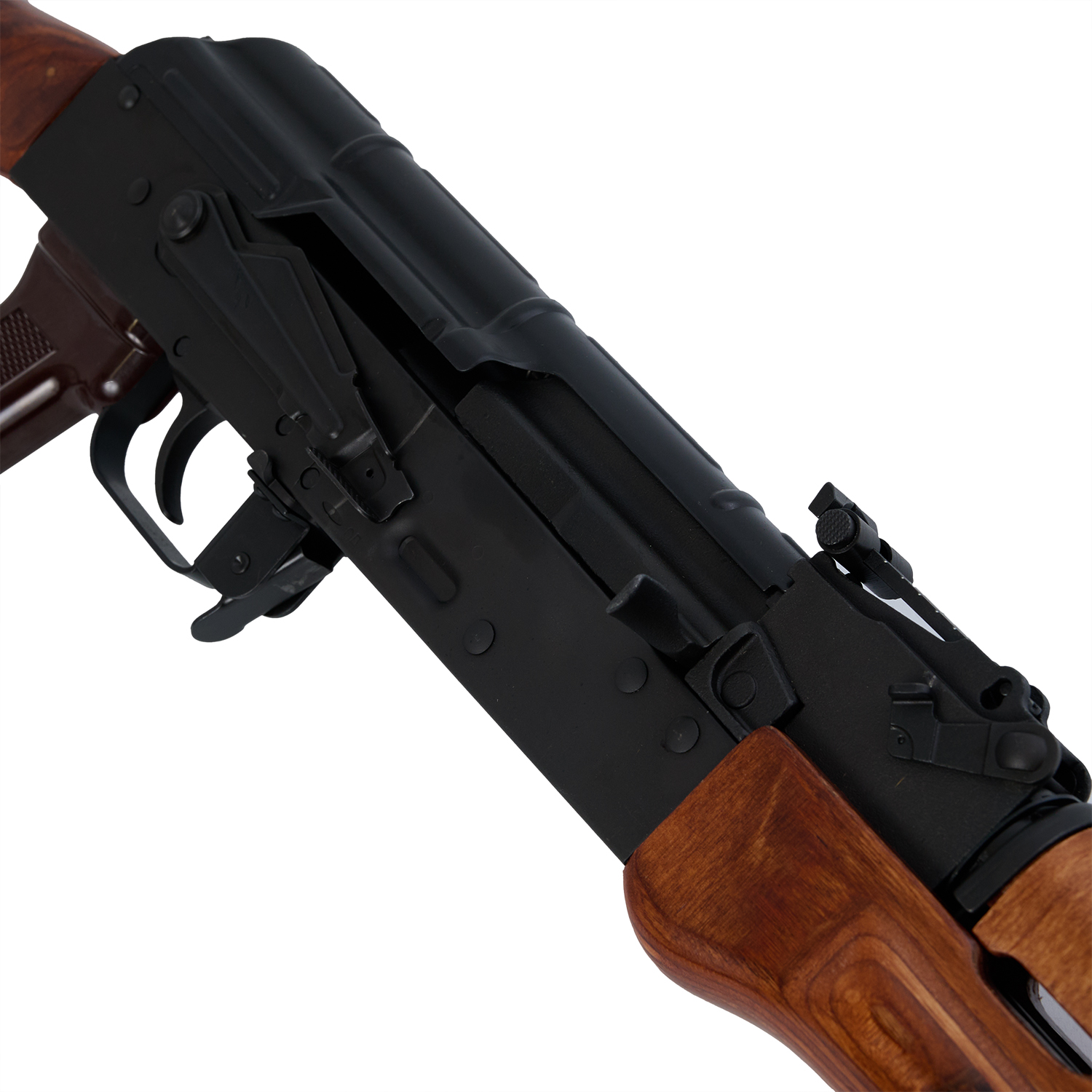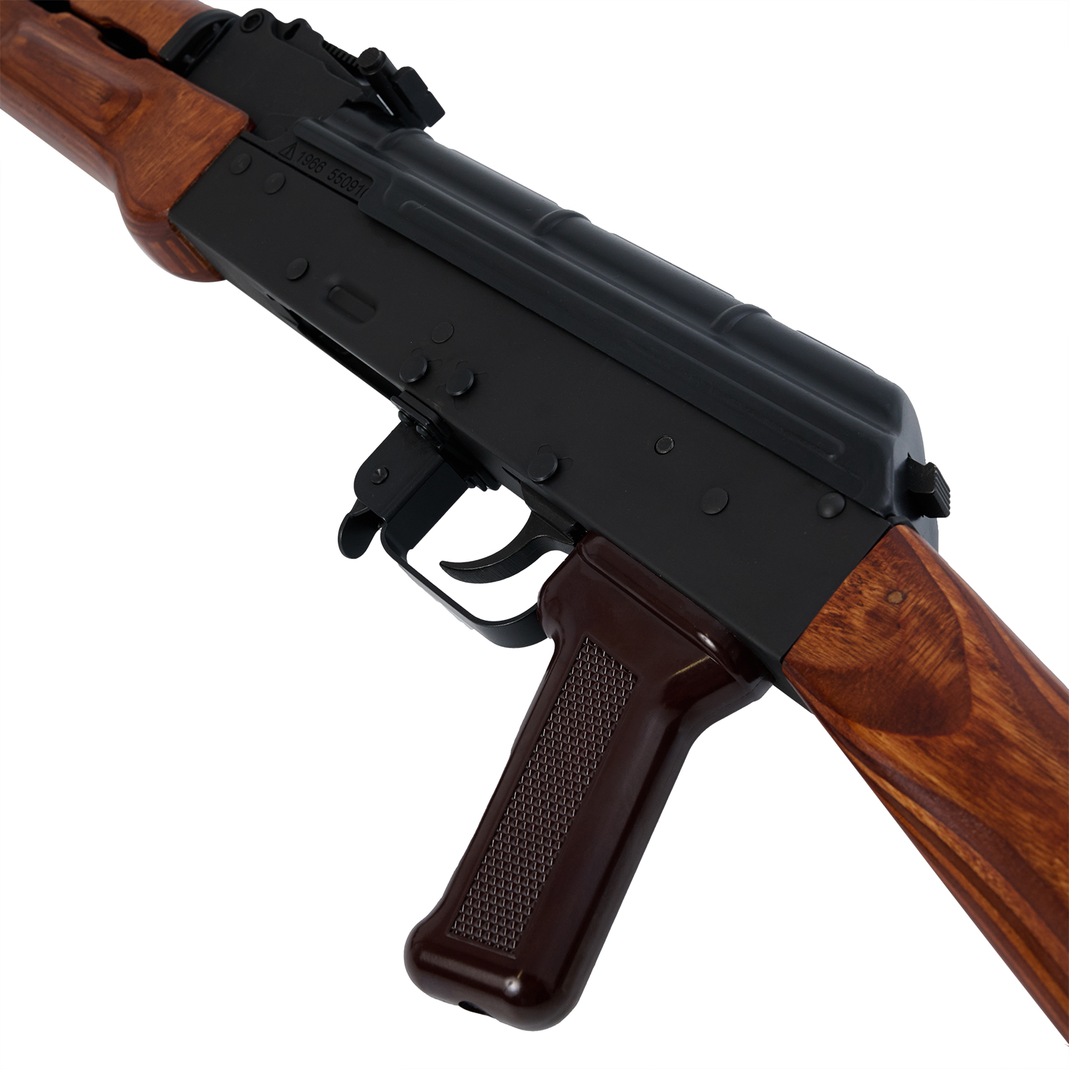 ミハエル・カラシニコフが設計したAKMはAK Modernizirovannyの名の通り、AK47に近代改修を施した後継機として1959年に正式採用されたライフルです。設計はAK47に比べ生産性の向上が図られており、レシーバーは削り出しからプレス加工に移行しているほか、重量の軽量化にも成功しています。