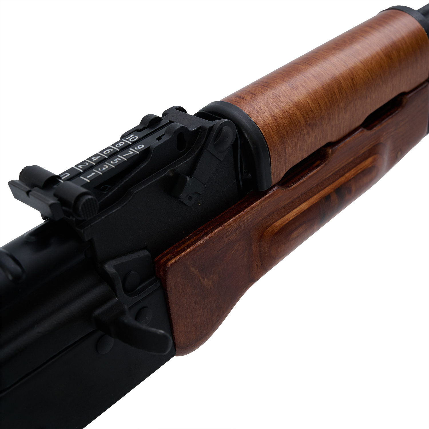 ストック形状も改修されており、AK-47の曲銃床では反動を制御しづらくマズルジャンプの原因となっていましたが、AKMでは直銃床に変更され反動を制御しやすくなりました。また、着剣装置が標準装備となったのもAKM以降となります。