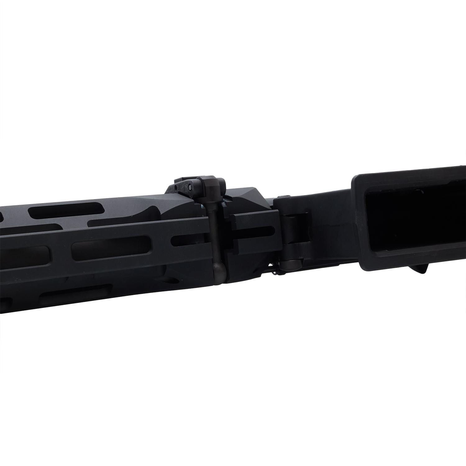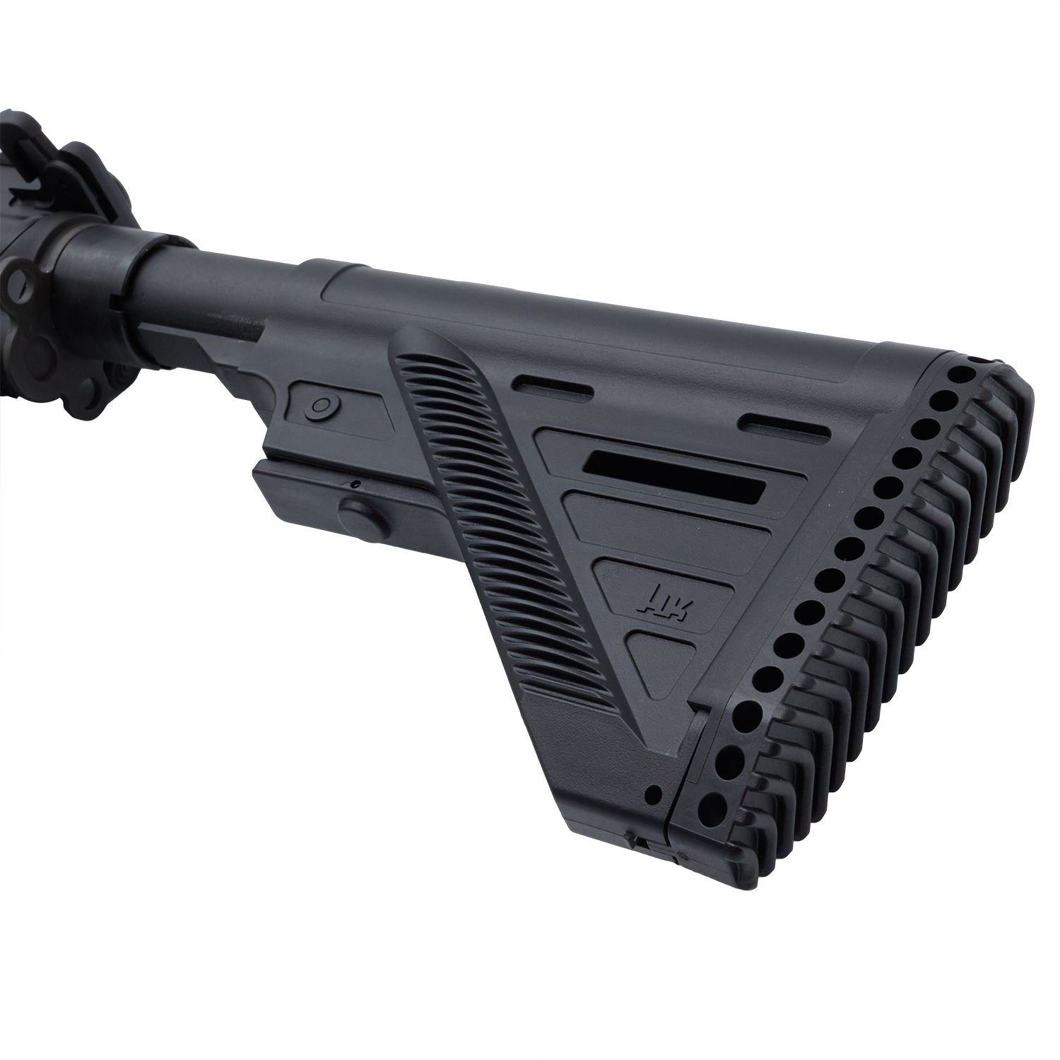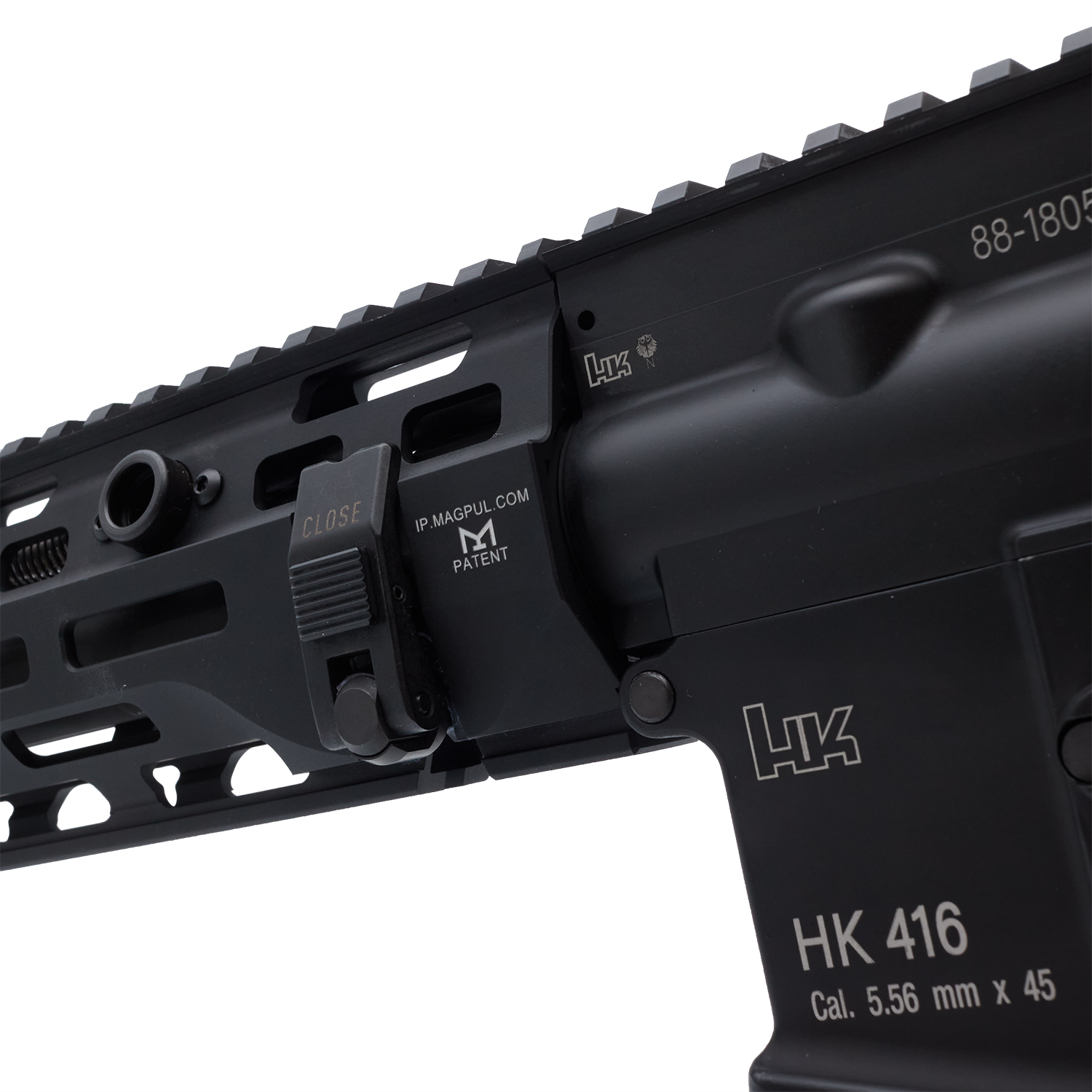 HK416A5は、ドイツのHeckler & Koch社が開発したHK416シリーズの改良型アサルトライフルで、5.56×45mm NATO弾を使用し、ショートストロークガスピストン方式を採用しています。高い信頼性と整備性を備え、過酷な環境でも安定した作動性能を誇ります。A5モデルでは、サプレッサー運用に対応したツール不要の2段階式ガスレギュレーター、アンビ仕様セレクター、操作性を高めた大型チャージングハンドル、高耐久の冷間鍛造バレルなどが特徴です。