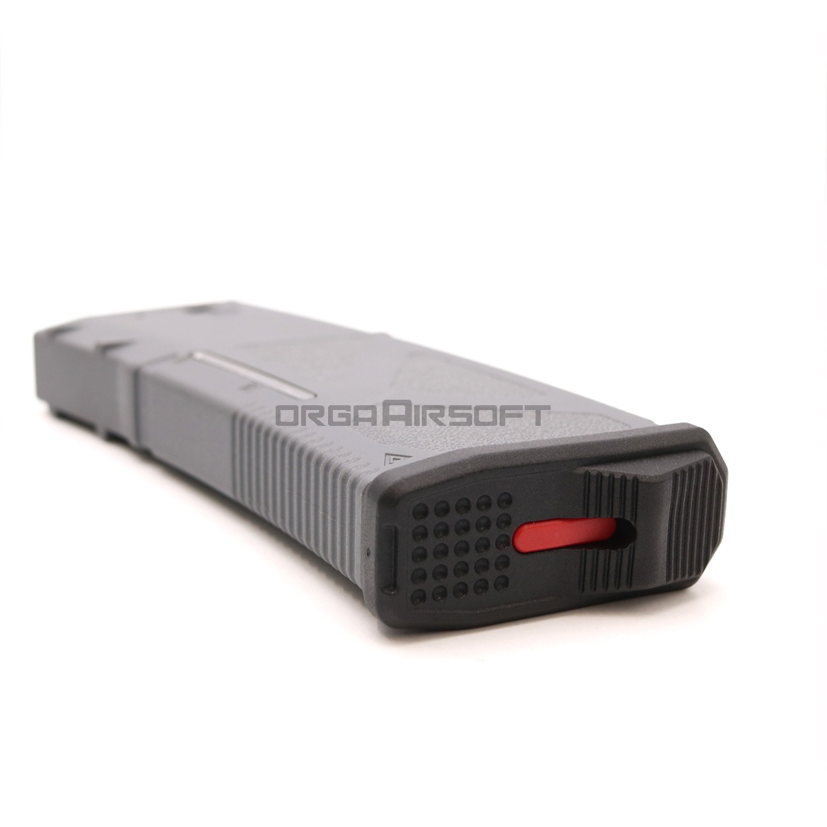多弾マガジンでフルオートを楽しみたいがゼンマイを巻くのが面倒くさい。スペアマガジンを持たずに身軽に走り回りたい。ゼンマイ式マガジンのジャラジャラ音が気になる。あらゆる多弾マグユーザーの不満を解消し、新たなプレースタイルを実現する画期的なミッドキャパシティー・スペアマガジンです。