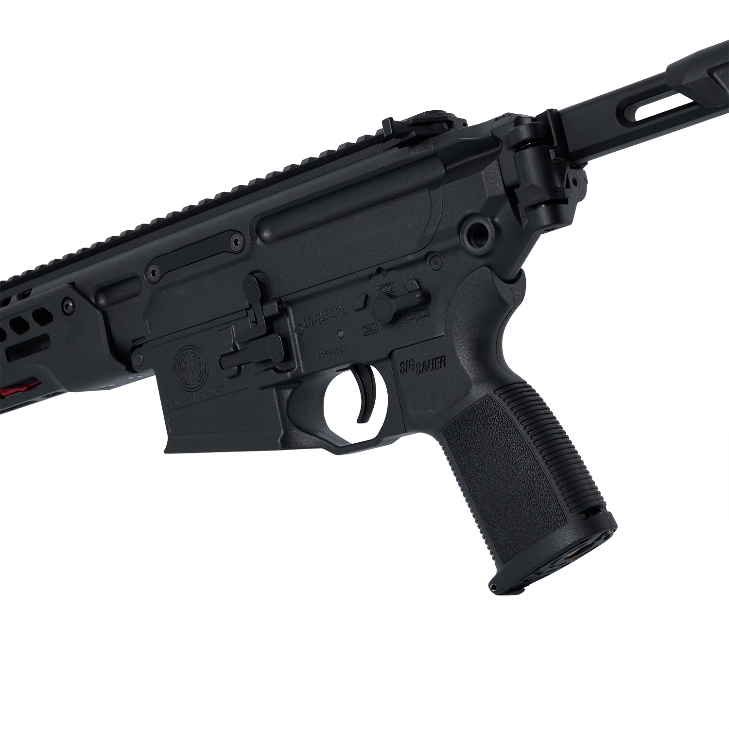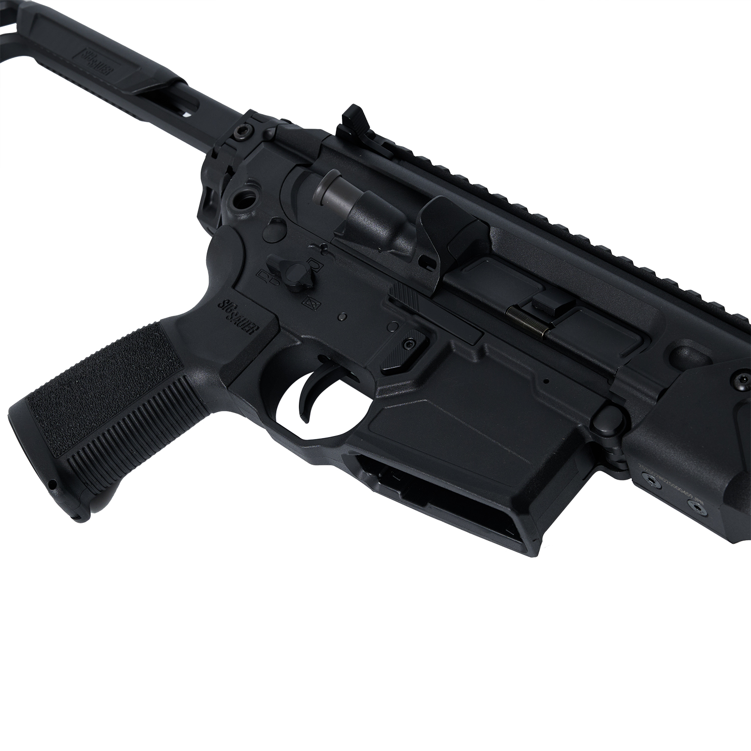 レシーバーとハンドガードは共にナイロンファイバーによる強化樹脂製で、軽さを実現しつつ剛性も充分。ガタや軋みは皆無です。質感もパッと見ではポリマーとは気づかない程で、完成度の高さに驚嘆します。
