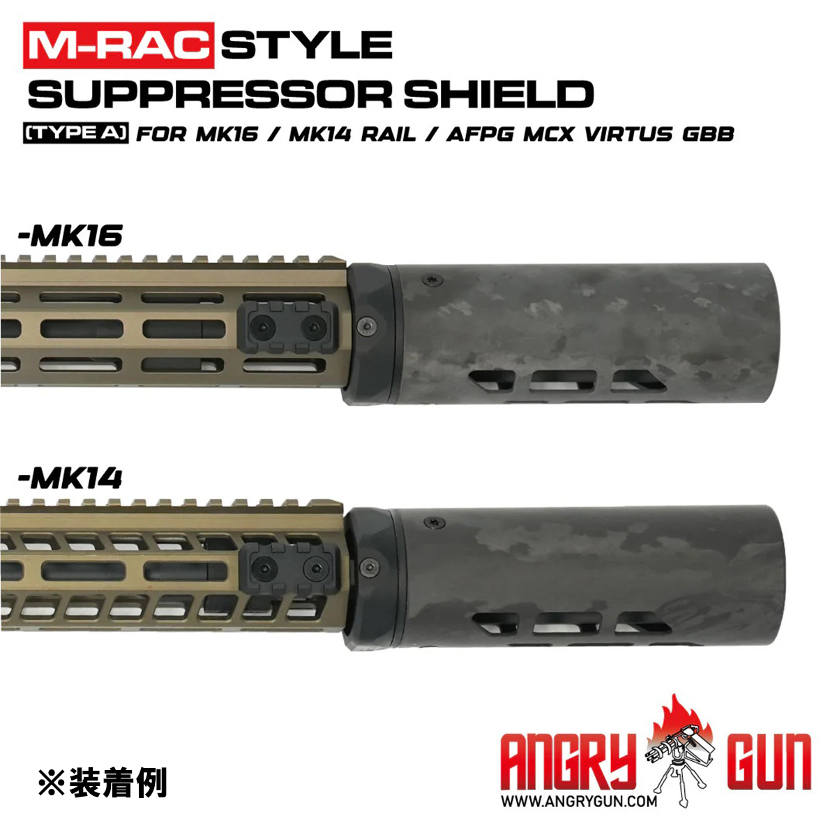 ANGRY GUN MODTAC M-RACタイプ サプレッサーシールド Type-A カーボンブラック 6.5インチ(SMR MK16/MK14/AFPG MCX VIRTUS GBB)