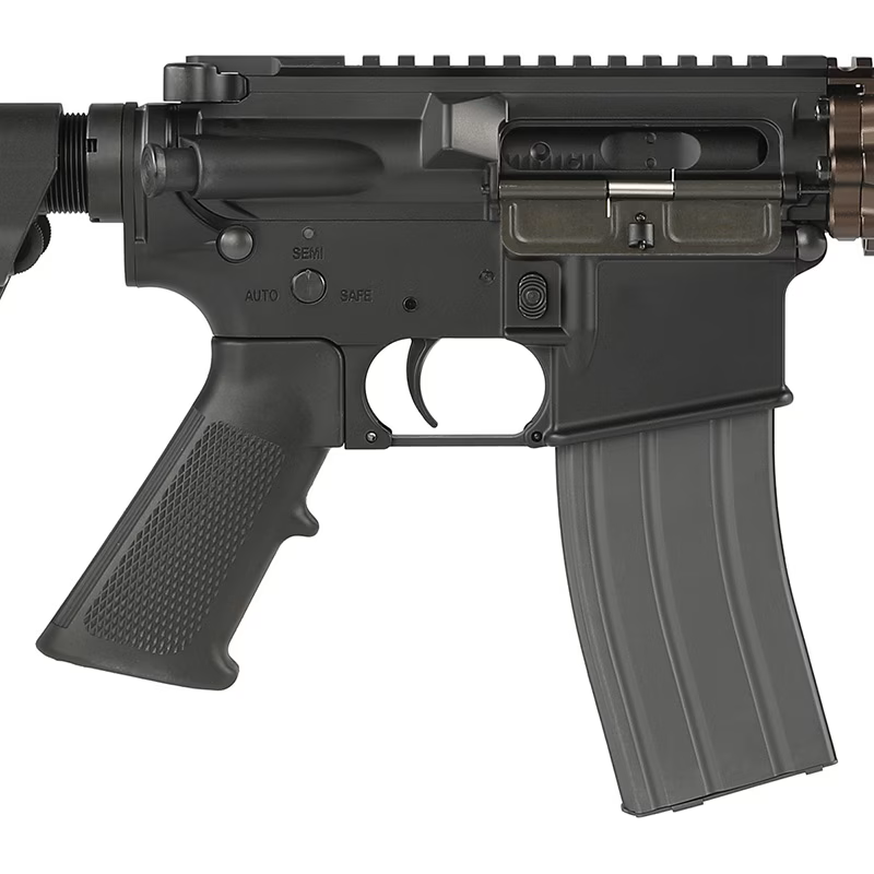ロアレシーバーにはCOLT、MLOKレールから覗くアウターバレル側面にはDDF MP 5.56 NATO 1/7の刻印が施されています。