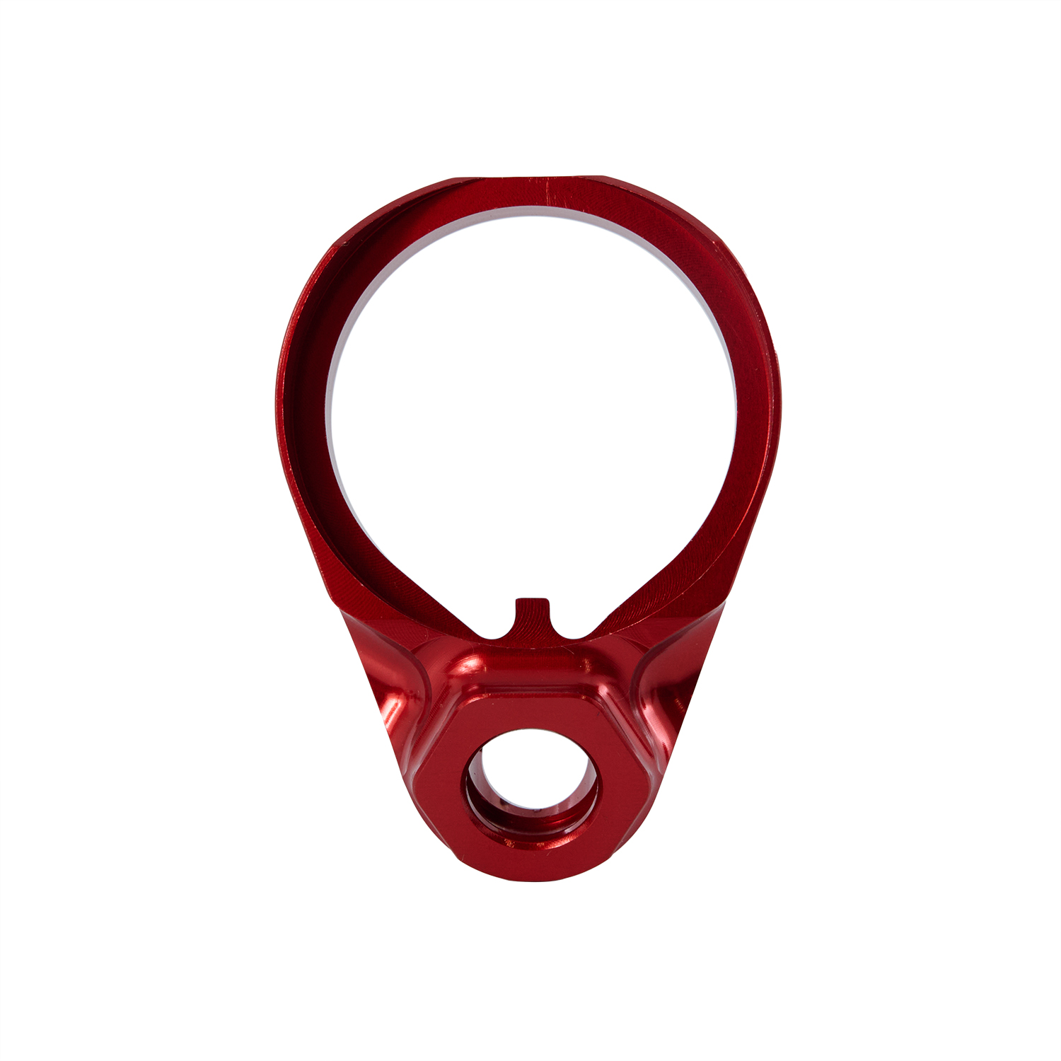 F1 FIREARMS SQDの特徴的なデザインを再現した、トレポン(PTW)・ガスブロ用のエンドプレートです。AR-15/M4/M16系ロアレシーバーのバッファチューブ接続部に、キャッスルナットで共締めして固定します。アルマイトによるメタリックなレッドカラー仕様です。