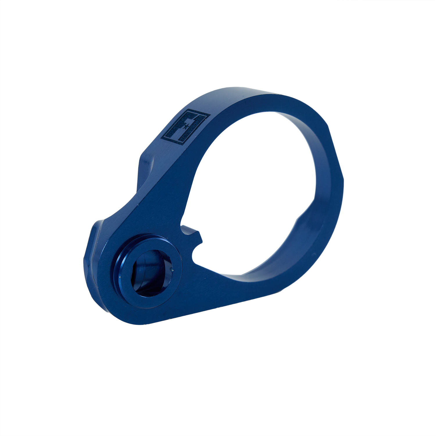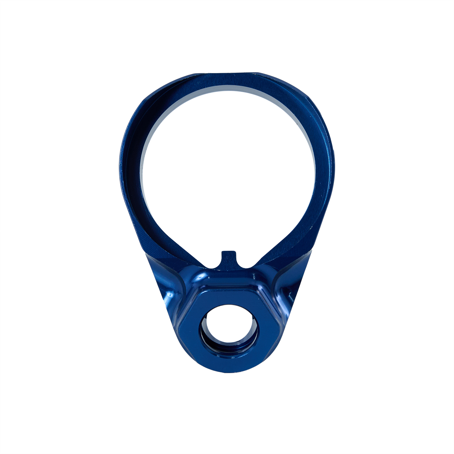 F1 FIREARMS SQDの特徴的なデザインを再現した、トレポン(PTW)・ガスブロ用のエンドプレートです。AR-15/M4/M16系ロアレシーバーのバッファチューブ接続部に、キャッスルナットで共締めして固定します。アルマイトによるメタリックなブルーカラー仕様です。
