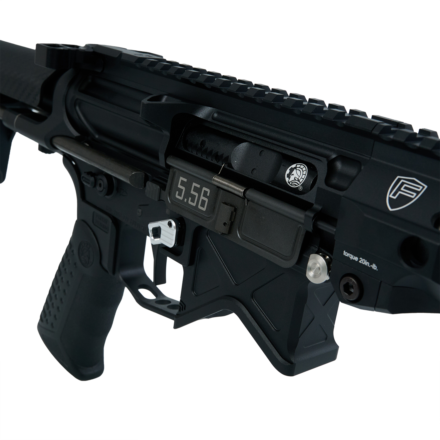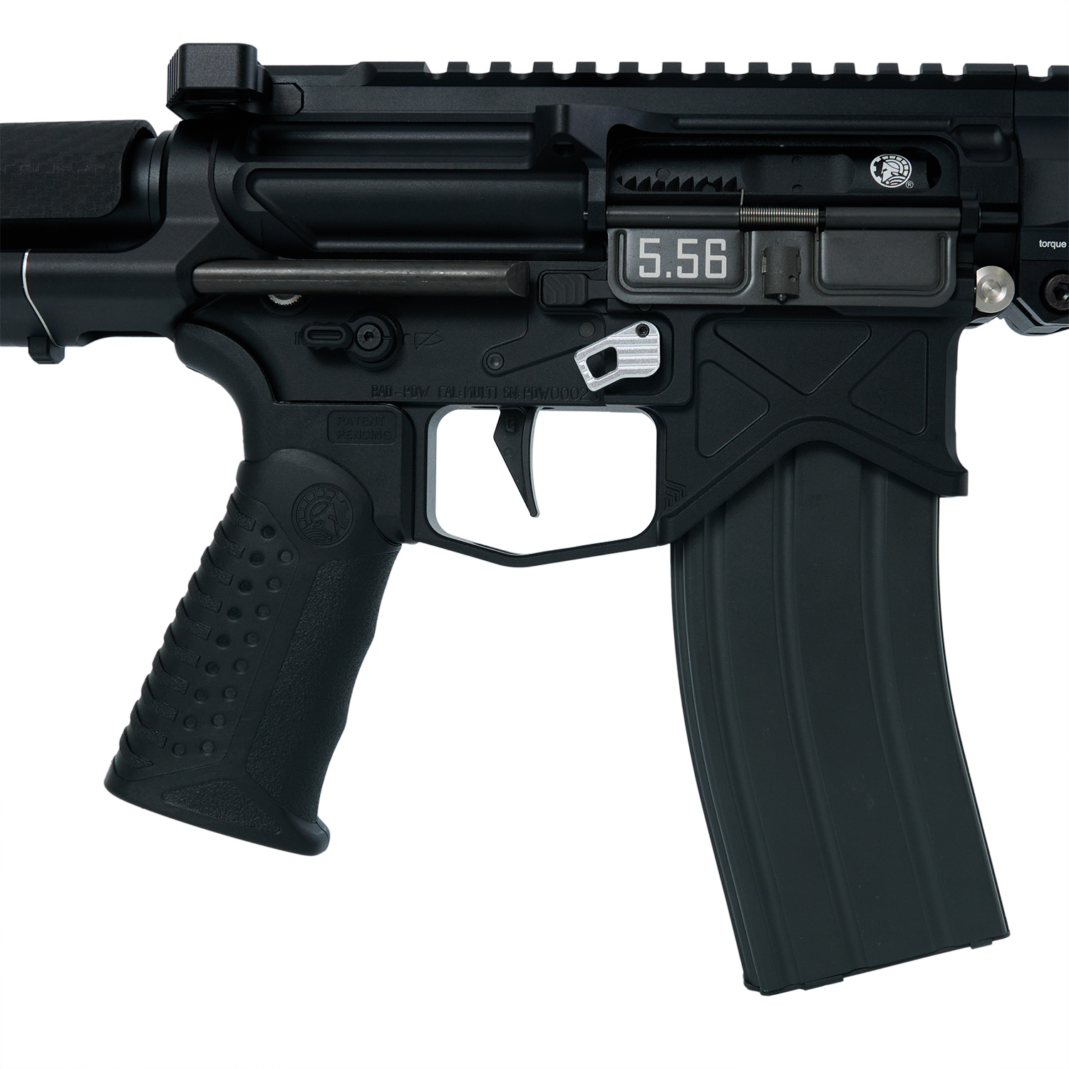 BAD556レシーバーとPDWストックの組み合わせは人気の高いセットアップですが、ロアレシーバーとPDWストック基部が一体型となったPDWロア(モノリシックロア)はエアソフトパーツとしてはレア。更にマグリリースやボルトリリースもアンビ仕様となる