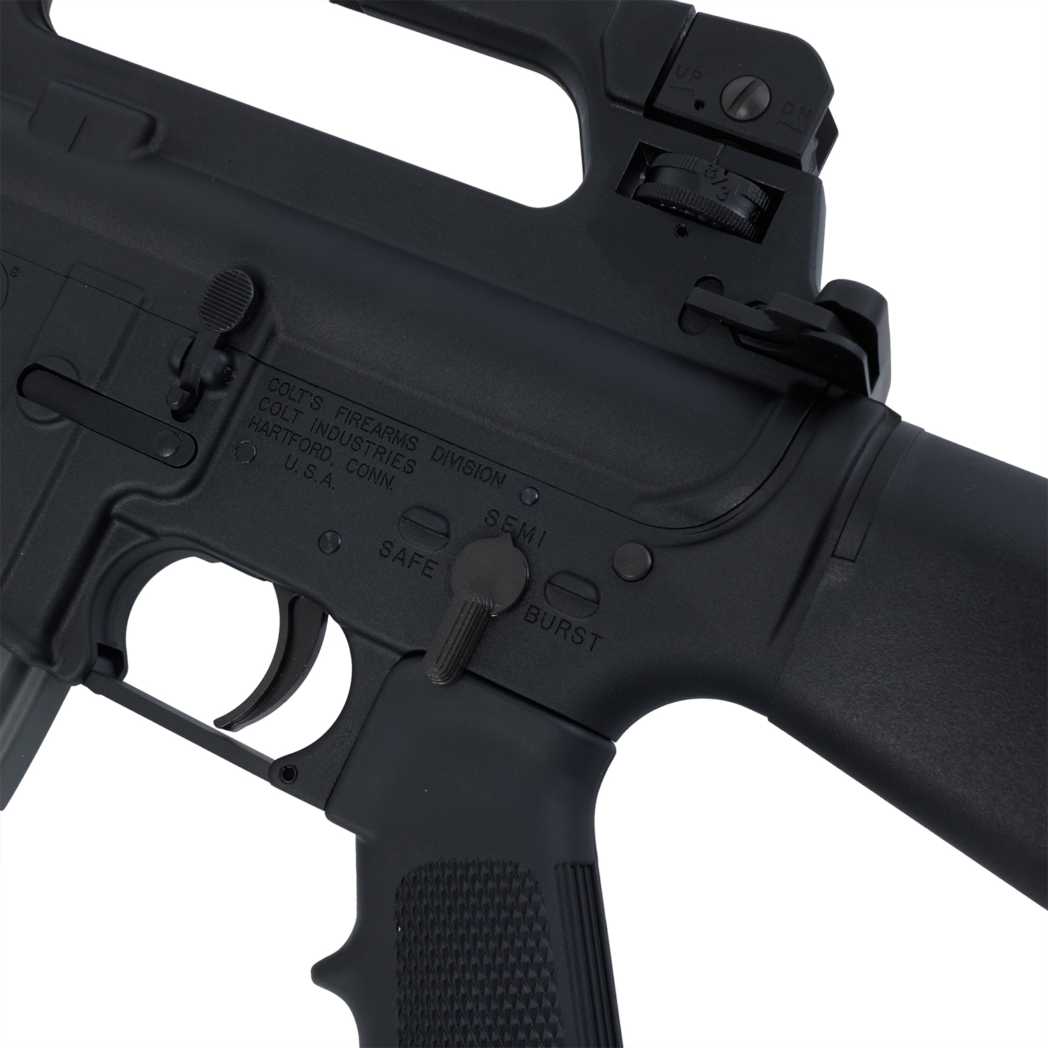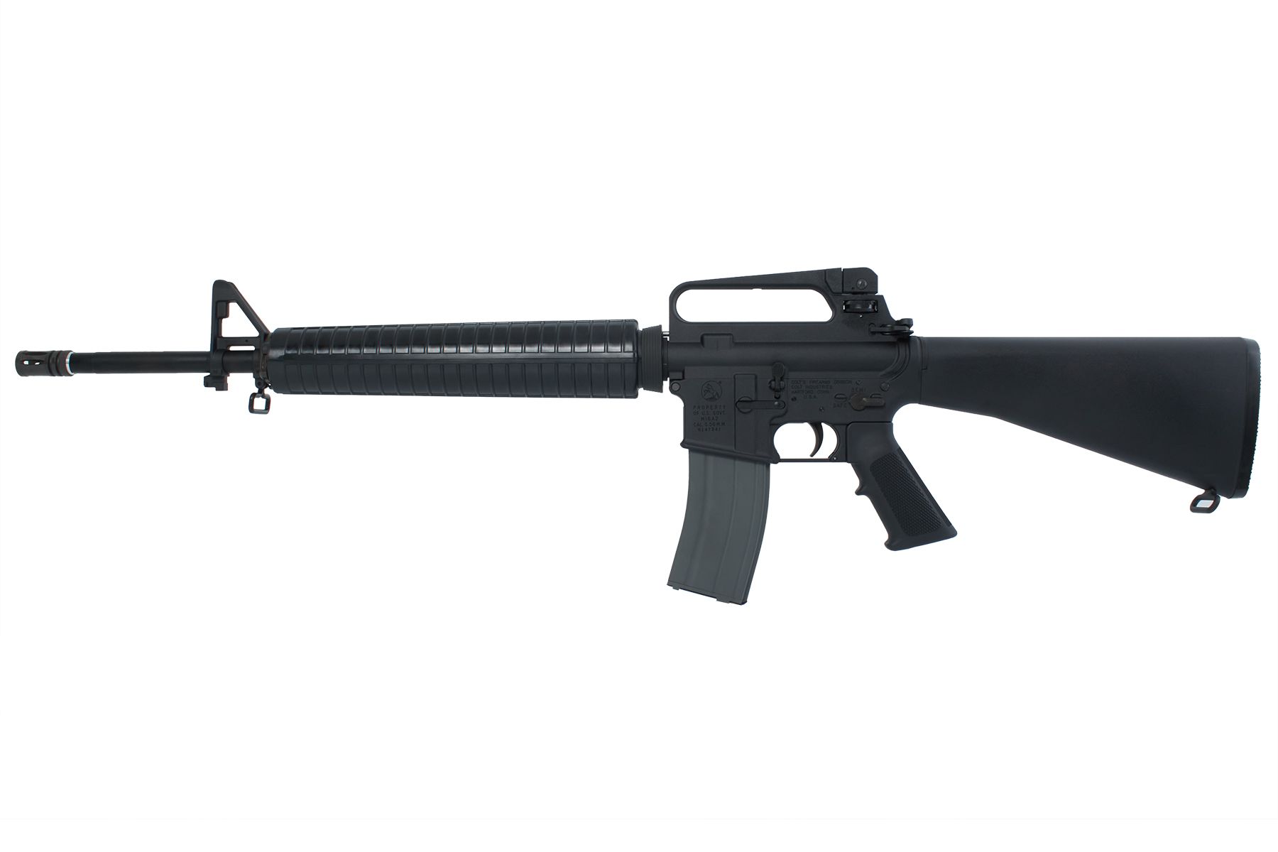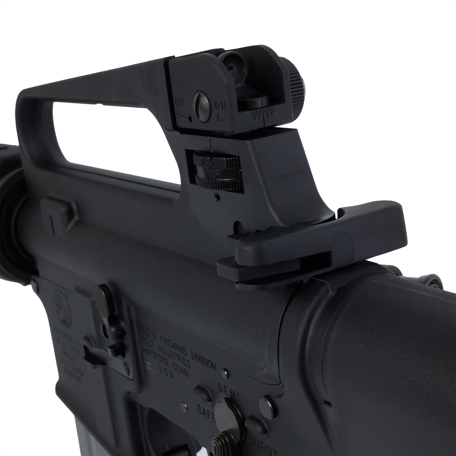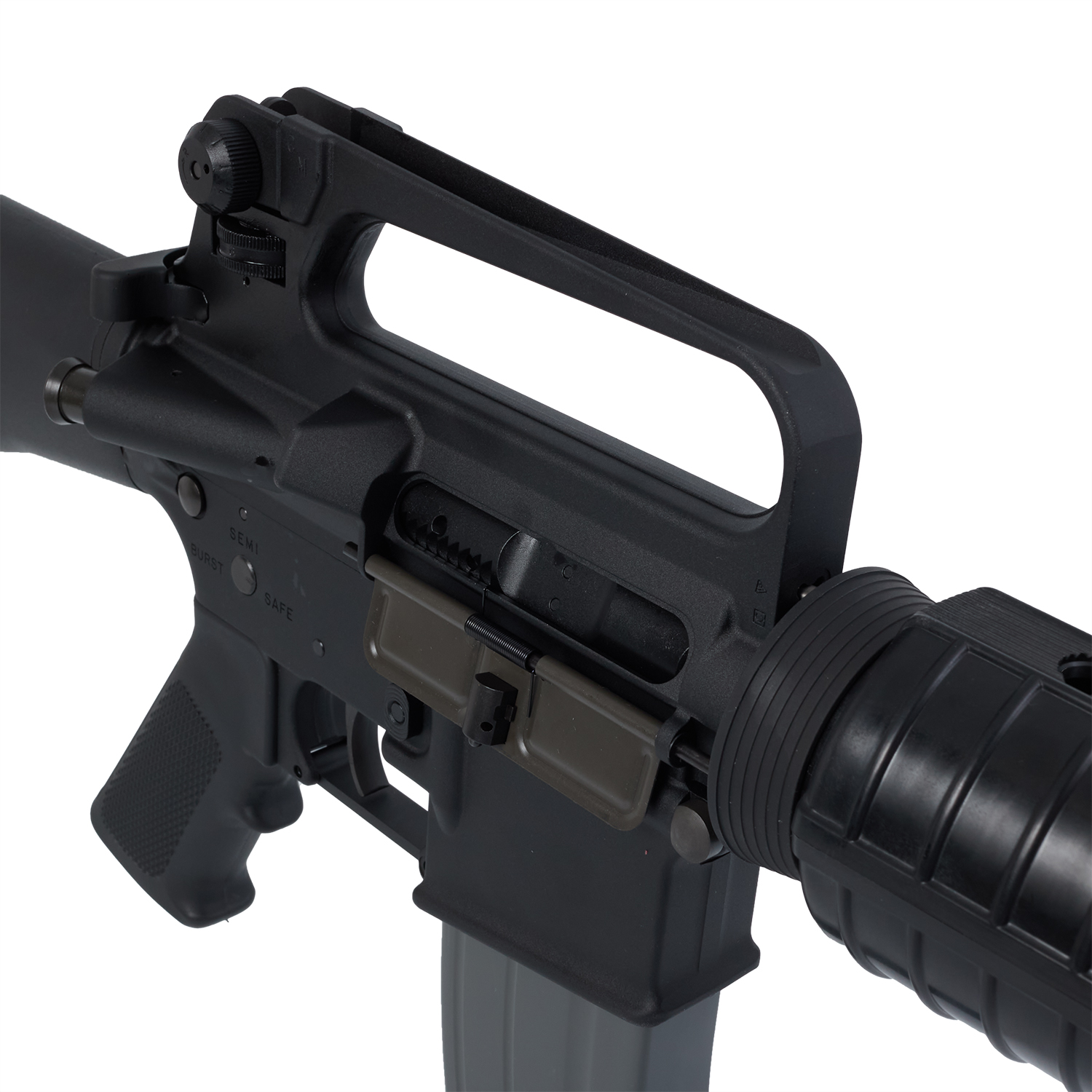 VFC M4 V3スペックならではの重さのあるリコイルは勿論のこと、実銃同様のメカニカル構造の3点バーストを再現。フルアジャスタブルリアサイトや、フォワードアシストノブの形状。ロアーレシーバーのリブを再現するなどCOLT社正式ライセンスの下、M16A2のディテールが余すことなく再現されています。マガジンは新型の空撃ち機構を搭載しガスブロならではの操作を楽しむことができます。